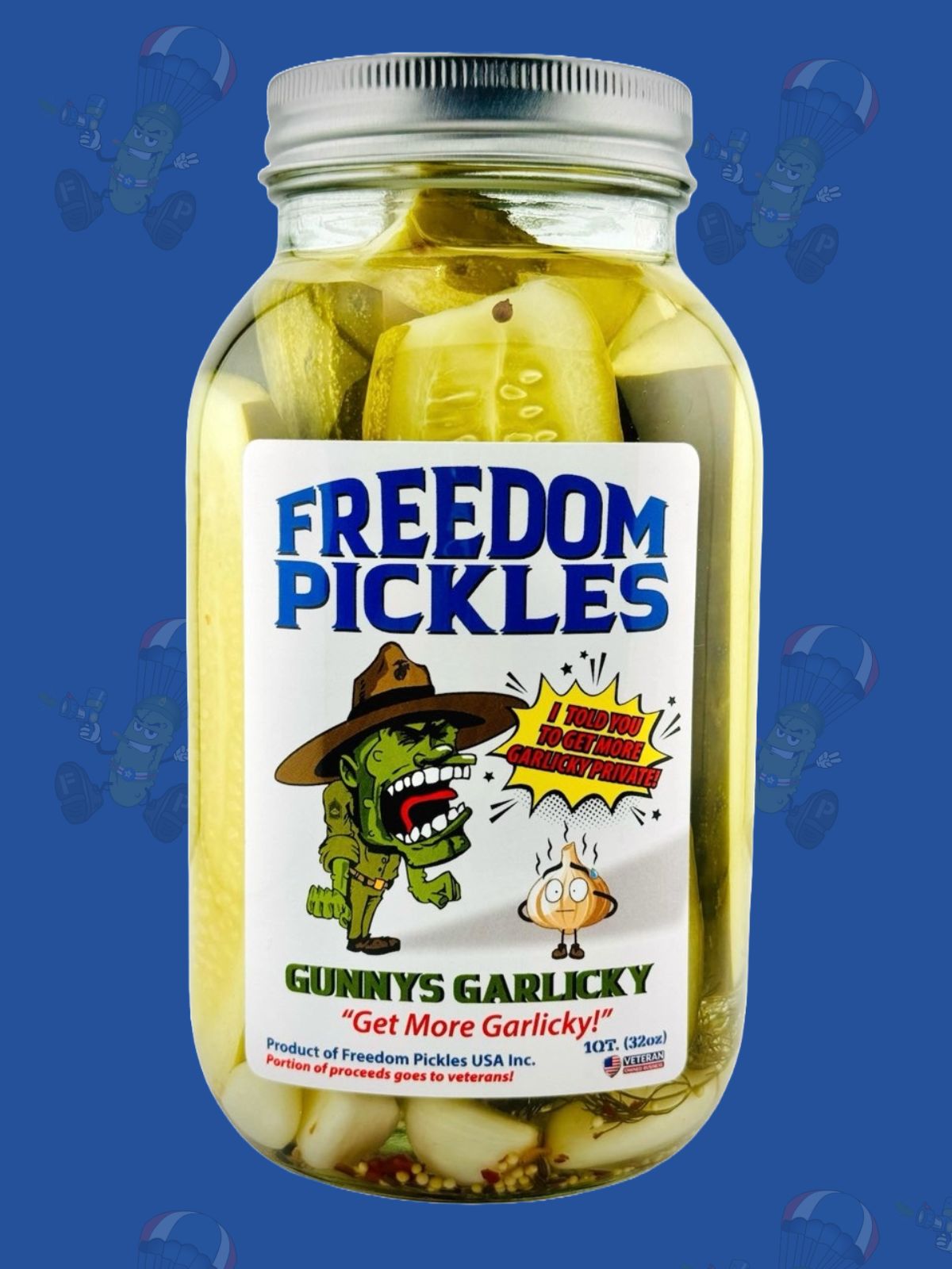 Trained under the watchful eyes of Gunny Hardway and Private Garlic Pyle, these pickles are built for those who take their garlic seriously. With crisp texture, big dill flavor, and serious garlicky bite, Gunny’s Garlicky delivers a tactical flavor strike in every bite.